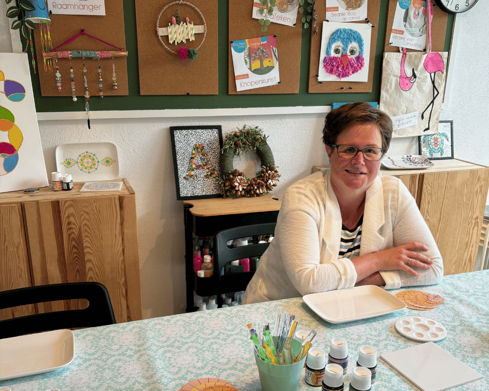 De activiteiten in het Knutselatelier doe ik naast een baan; ik ben namelijk ook nog communicatieadviseur bij een maatschappelijke organisatie. Omdat ik parttime werk, breng ik de andere dagen en het weekend vaak door in mijn atelier. Nieuwe creaties uittesten voor workshops, een kinderfeestje voorbereiden of op pad om materialen in te kopen. Heerlijk!